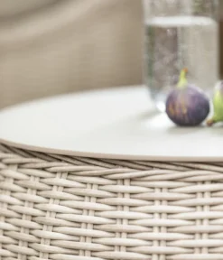 Wenn Sie sanft mit der Hand über die Kissen Ihres Dehner Loungesofa Bari streichen, werden Sie merken, wie gut sich das anfühlt. Denn Gewebe aus der synthetischen Faser Olefin zeichnen sich durch hervorragende Eigenschaften aus: sie sind weich, leicht und atmungsaktiv. Außerdem UV-beständig, sehr farbecht, wasserabweisend und abriebfest. Und last but not least: schnelltrocknend. Die wesentlichen Voraussetzungen dafür, dass Ihre Bezüge sehr lange schön bleiben, auch wenn Ihre Loungegruppe immer draußen steht. Gleiches gilt natürlich auch für das witterungsfeste Gestell aus Aluminium und das elegante Geflecht aus Polyrattan.